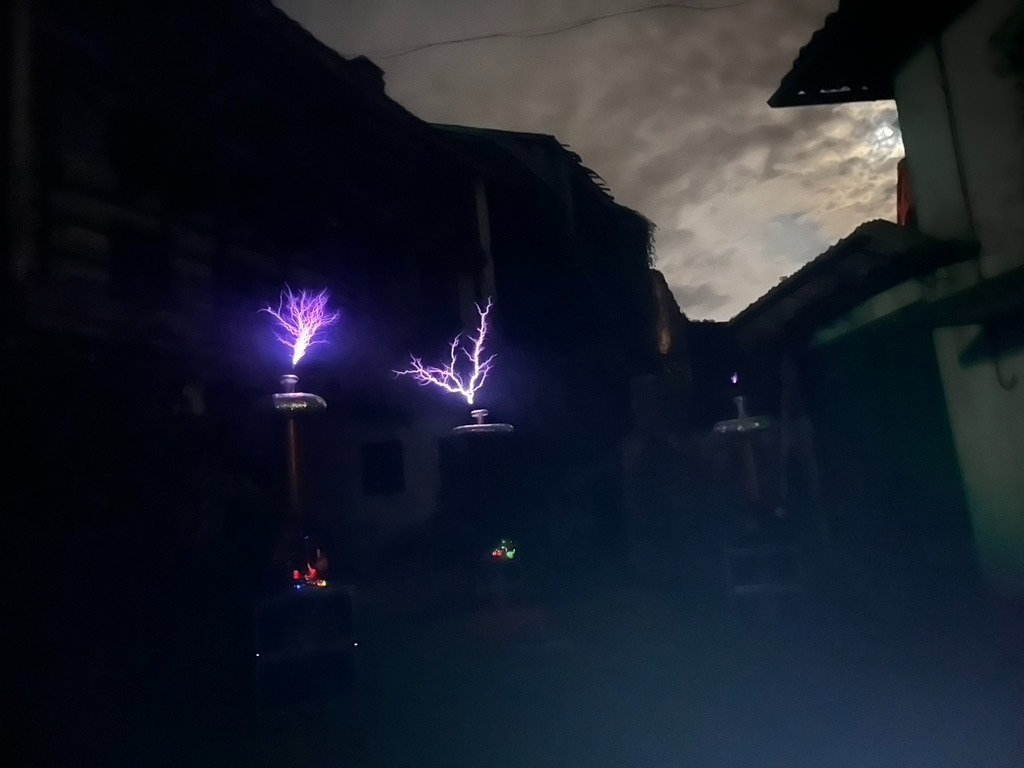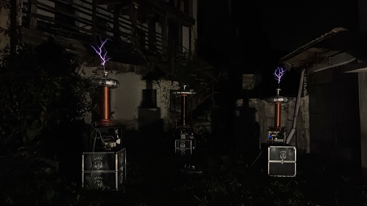 VoltagePyromania is a unique project that combines science, music, and visual performance, transforming the power of electricity into art. At the heart of the scene are the Tesla Coils, instruments capable of generating extremely high-voltage discharges that, when precisely controlled, become sounds and melodies. Without amplifiers or speakers, the plasma vibrates as if it were an invisible string, giving life to a true “symphony of lightning.” Each discharge is a note, every variation a timbre, and every sequence a rhythm capable of transforming energy into pure music.